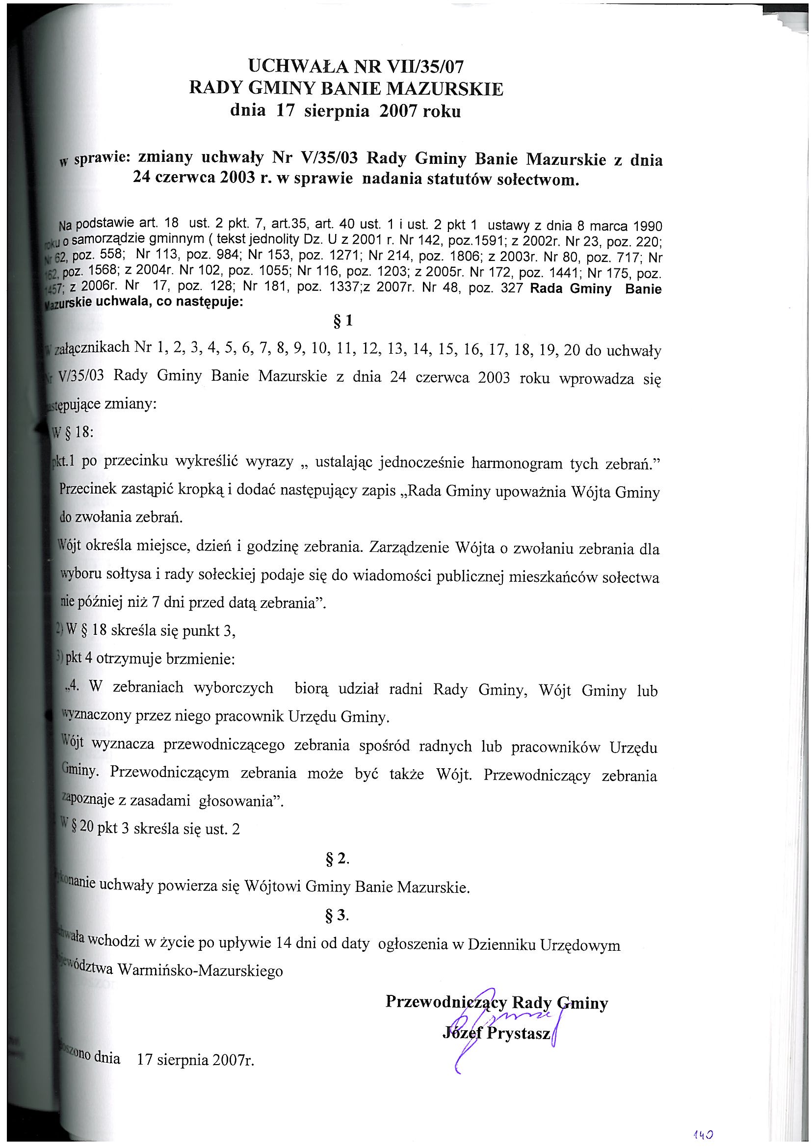 - Uchwała Nr XXVII/146/2010 Rady Gminy Banie Mazurskie w sprawie zatwierdzenia Planów Odnowy Miejscowości.