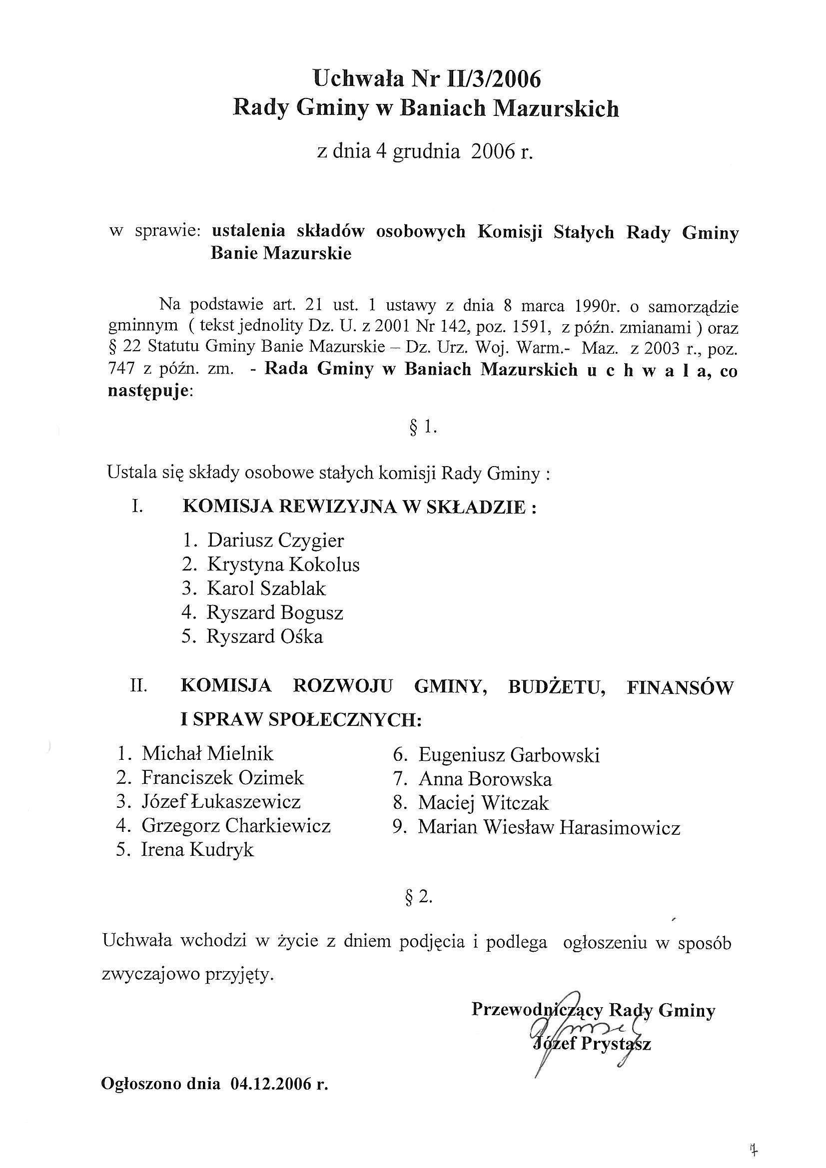 W sprawie ustalania składów osobowych Komisji Stałych Rady Gminy Banie Mazurskie.