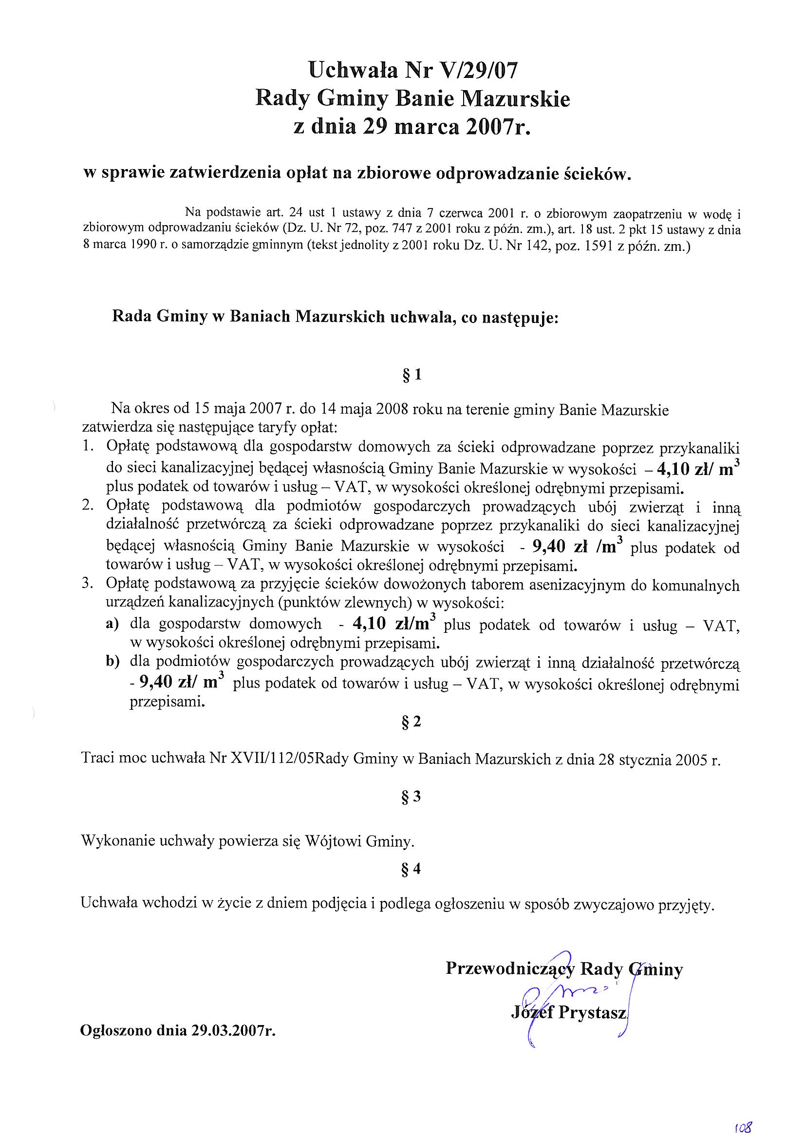 w sprawie zatwierdzenia opłat za zbiorowe odprowadzanie ścieków