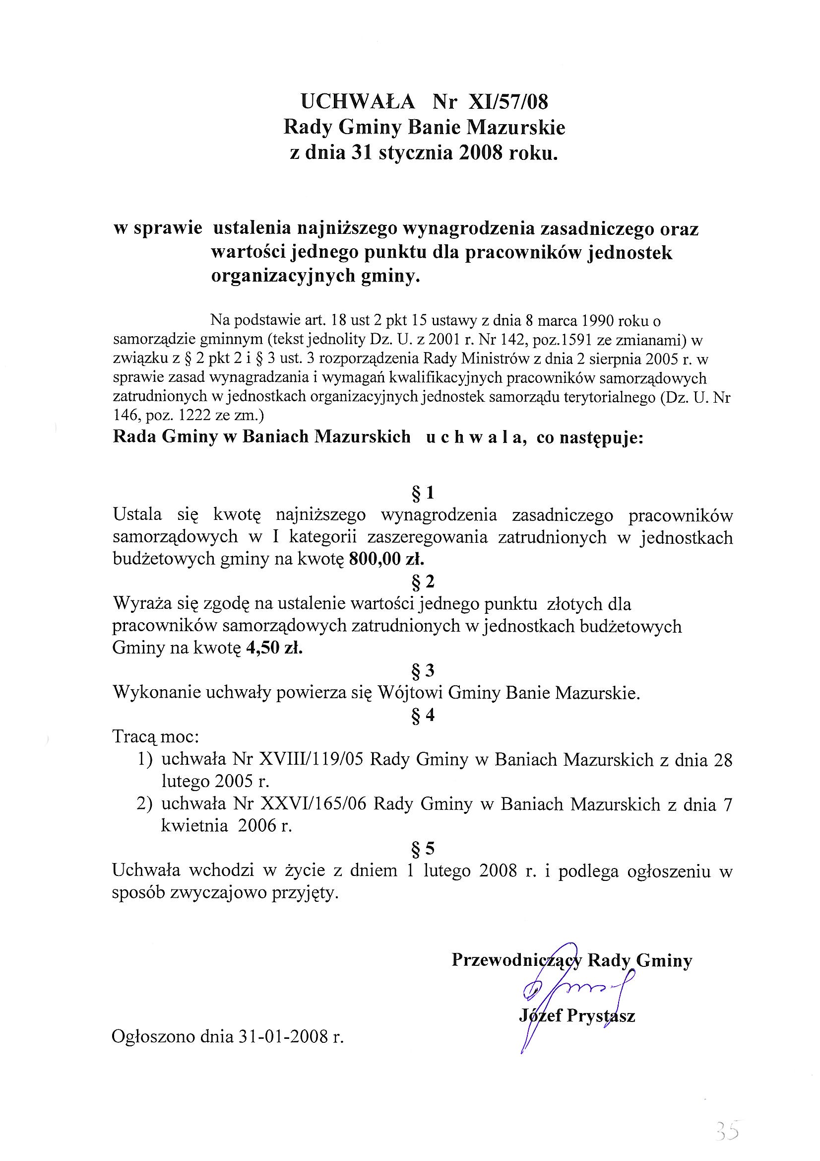 W sprawie ustalenia najniższego wynagrodzenia zasadniczego oraz wartości jednego punktu dla pracowników jednostek organizacyjnych gminy.