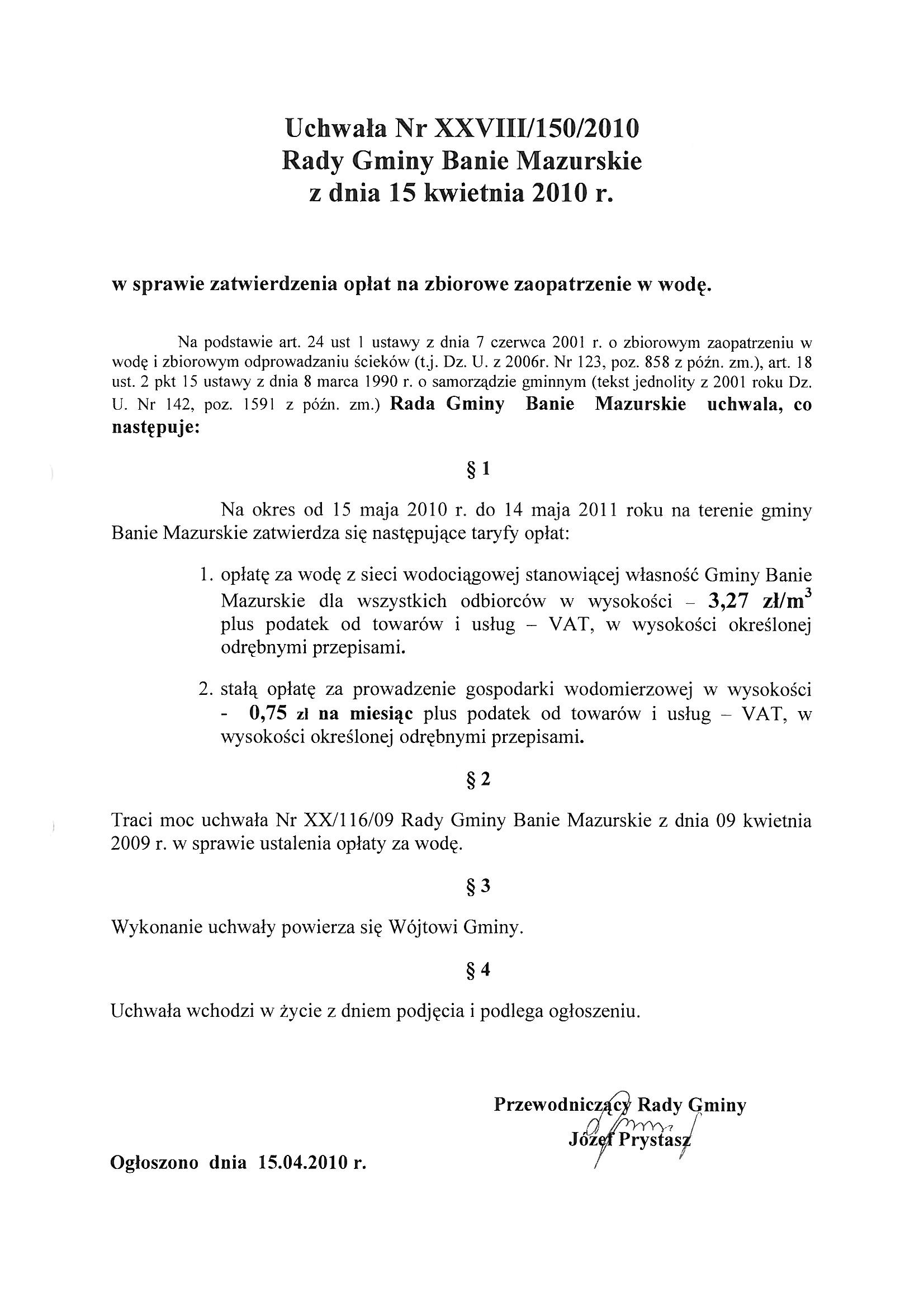 w sprawie zatwierdzenia opłat na zbiorowe zaopatrzenie w wodę