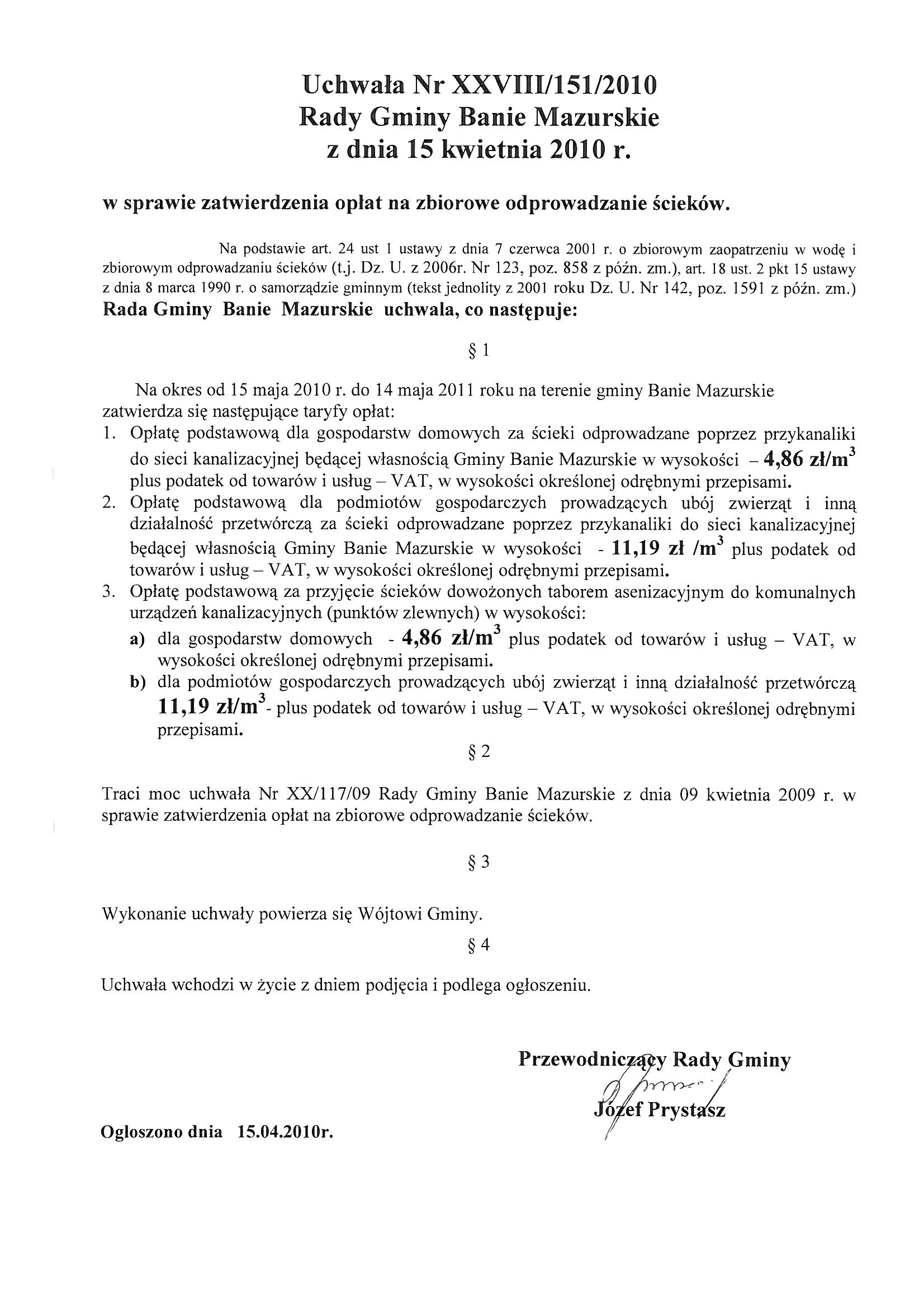 w sprawie zatwierdzenia opłat na zbiorowe odprowadzanie ścieków