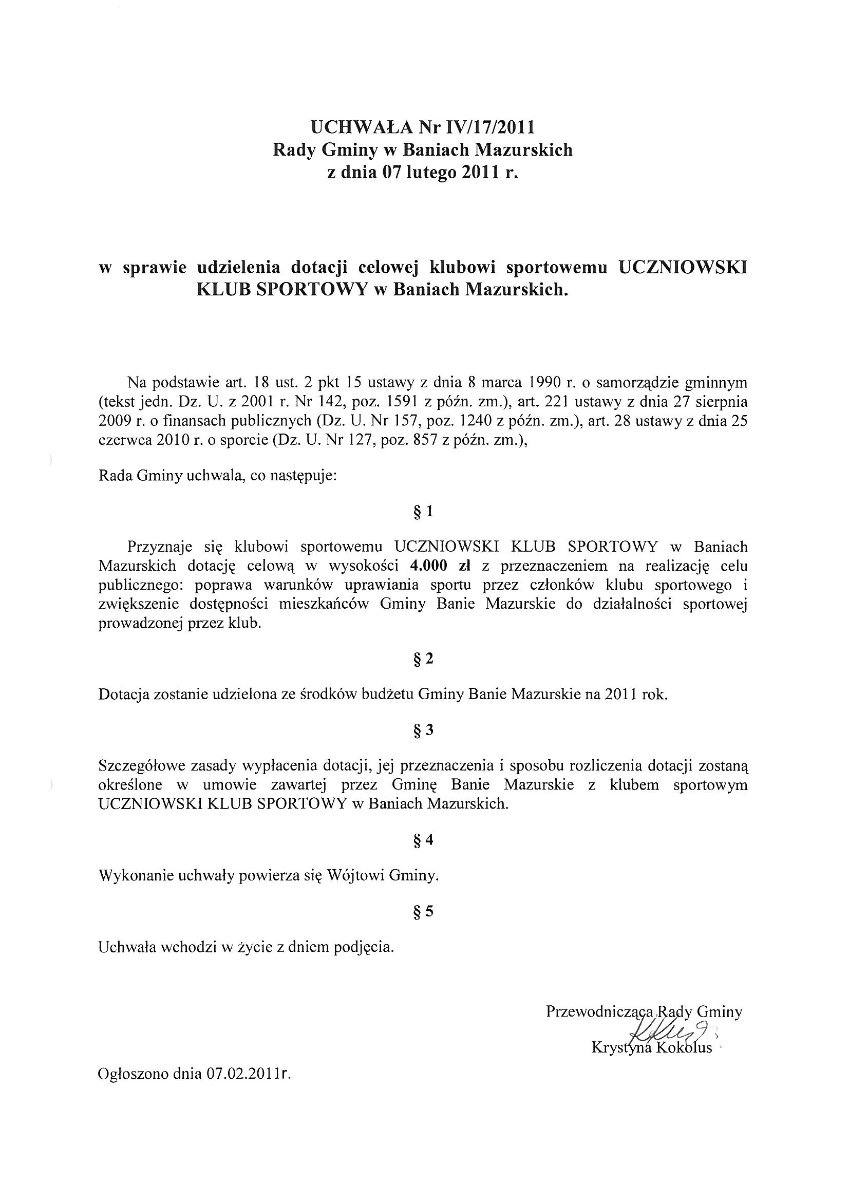 Uchwała Nr IV/17/2011