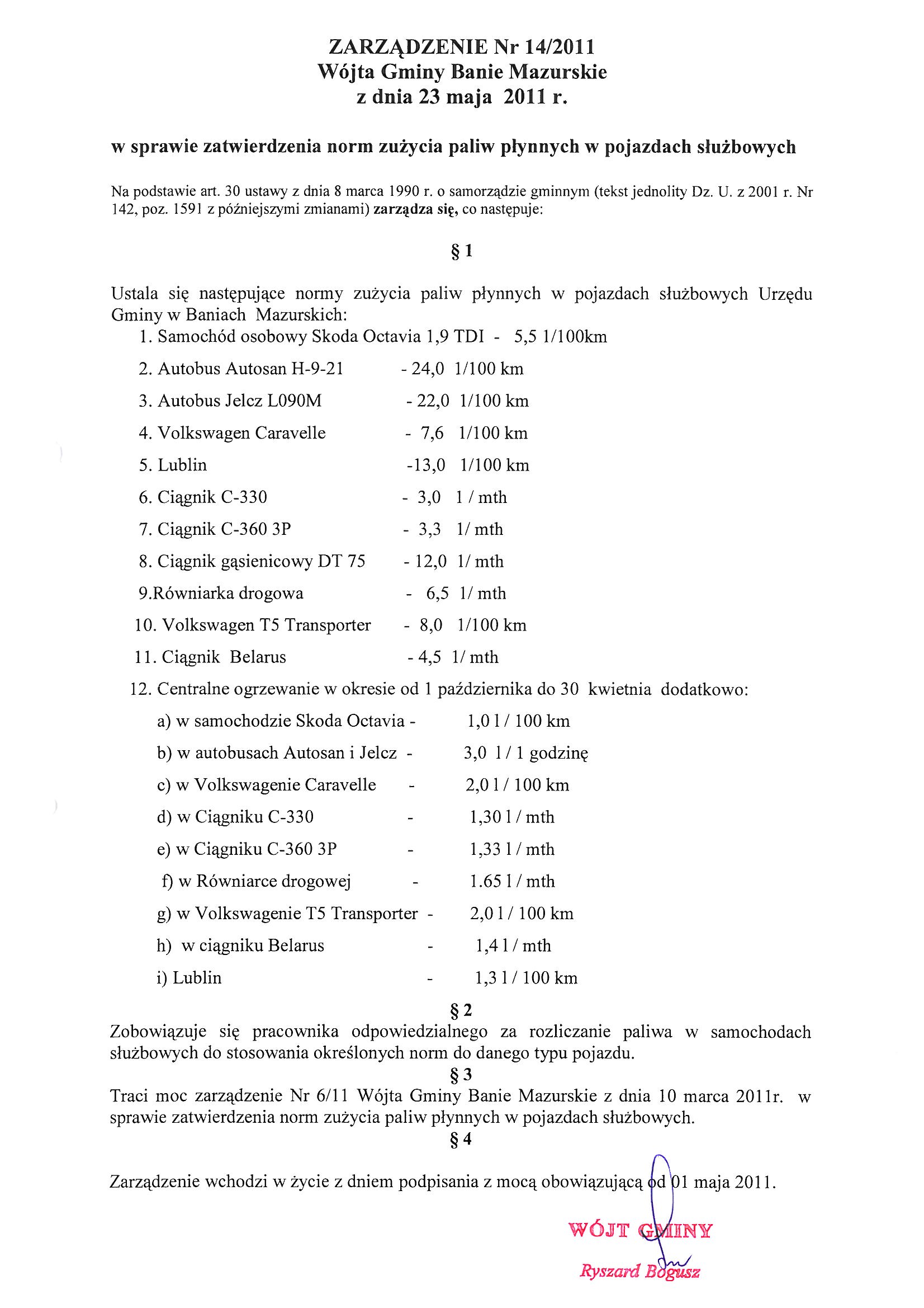 Zarządzenie Nr 14/2011 Wójta Gminy