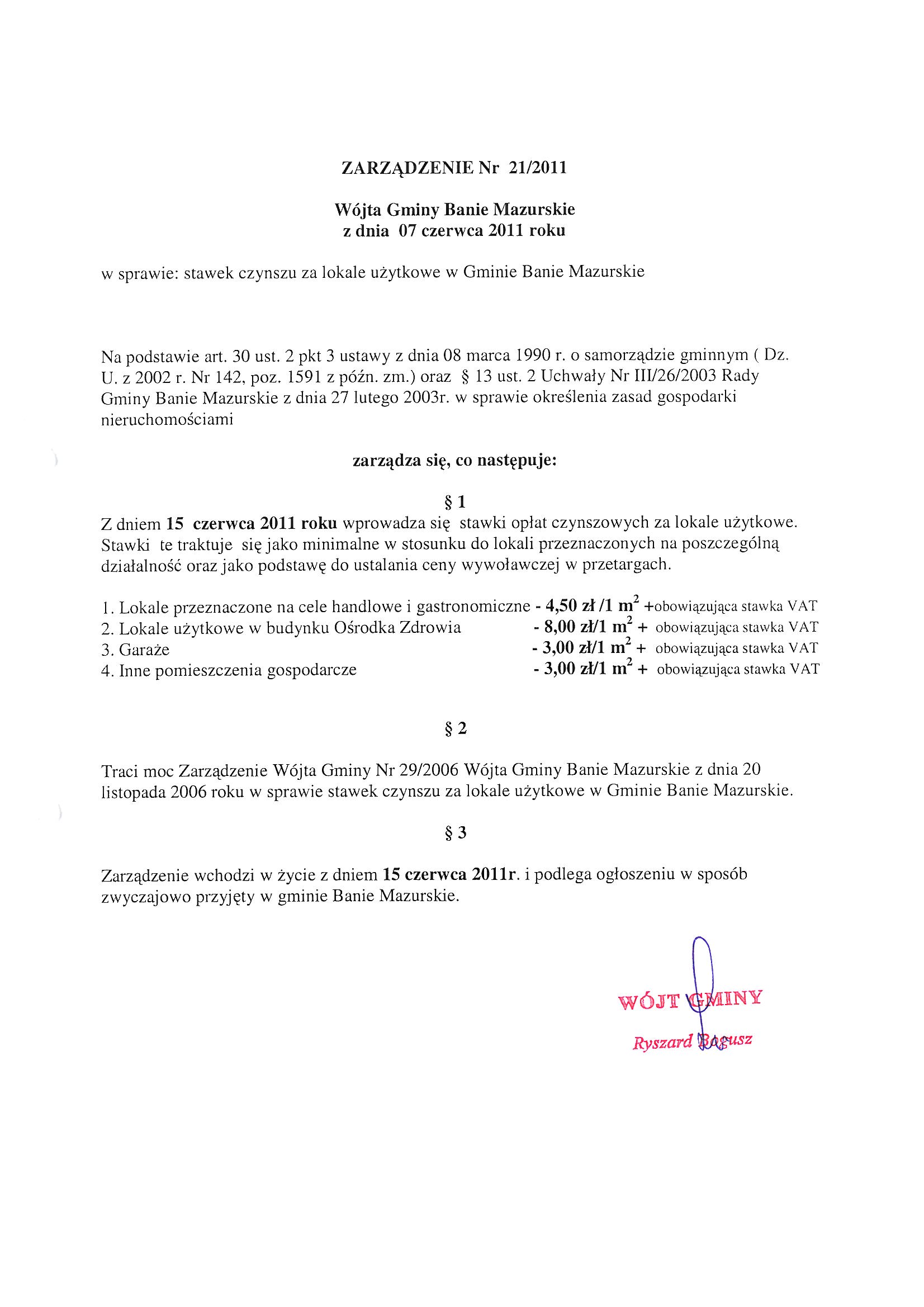 w sprawie stawek czynszu za lokale użytkowe w Gminie Banie Mazurskie.