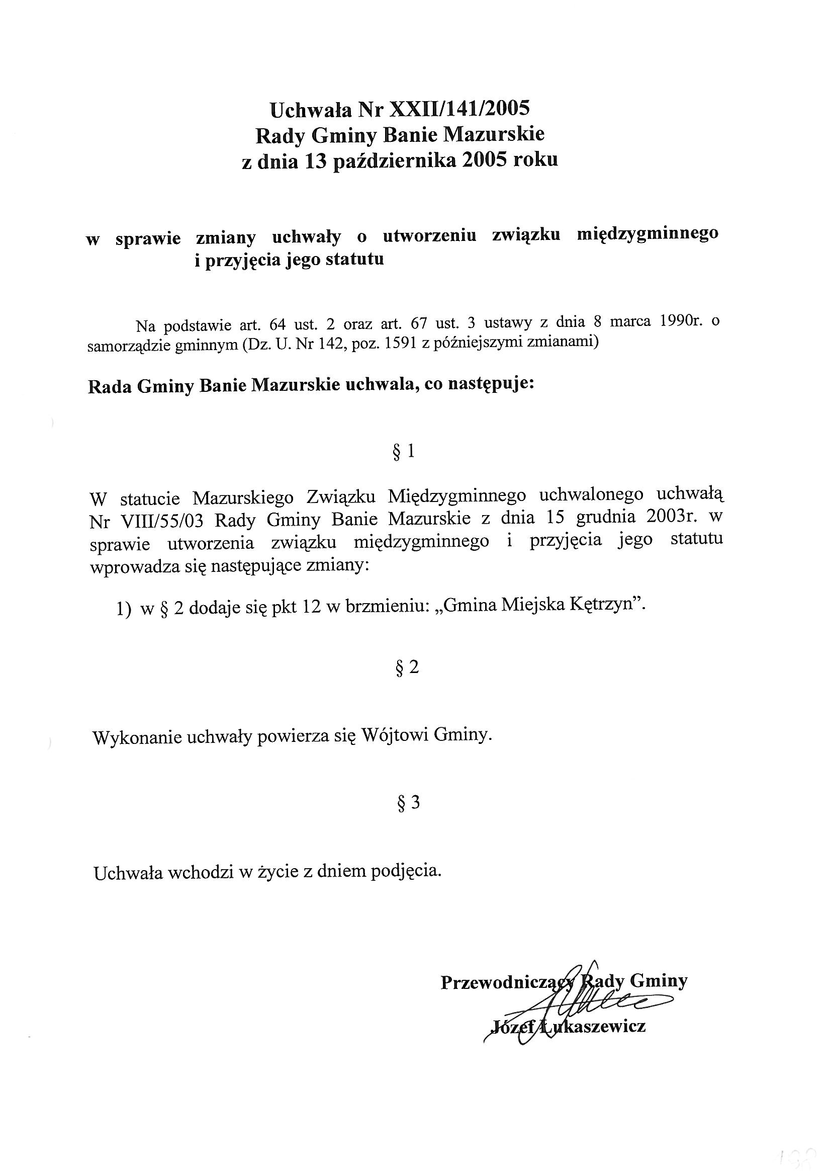 Wersja obowiązująca z dnia 22-02-2010 08:38:03 Drukuj W sprawie zmiany uchwały o utworzeniu związku międzygminnego i przyjęcia jego statutu . Numer aktu XXII/141/2005 Rodzaj aktu Uchwały Rady Gminy Data podjęcia 13-10-2005 Data wejścia w życie 2005-10-13 Status Zmieniony Zmieniony przez XXIV/152/2005 , XXIV/152/2005 , XXIV/152/2005 Załączniki Załączniki uchwała format: image/jpeg, rozmiar: 0.00 B, data dodania: 20-08-2009 11:42:56